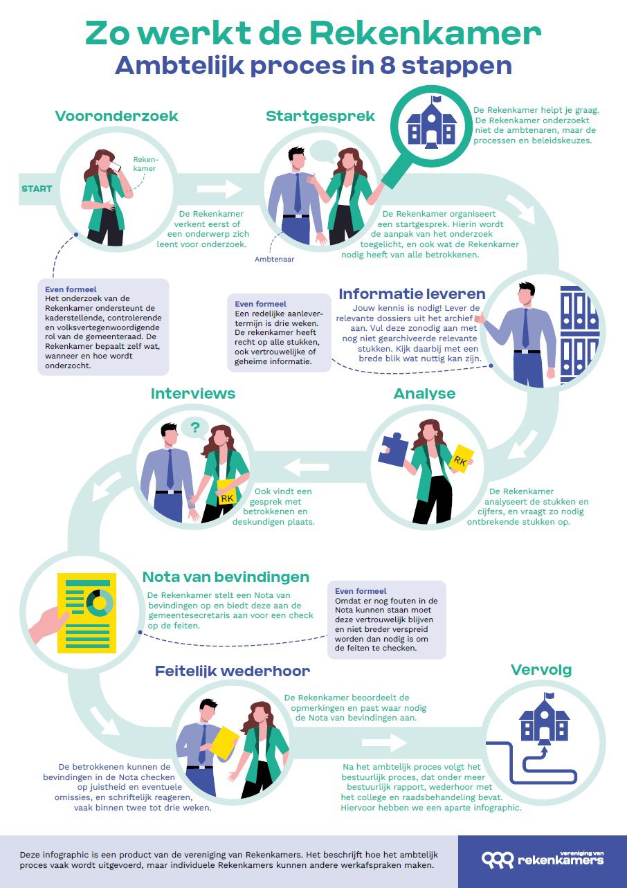 Elke gemeente, provincie en waterschap moet een rekenkamer hebben. Rekenkamers onderzoeken de doelmatigheid, doeltreffendheid en rechtmatigheid van het beleid. Dat gaat om meer dan rekenen. Ze onderzoeken wat er gebeurt en wat dat kost en oplevert. En: hoe dat beter kan.